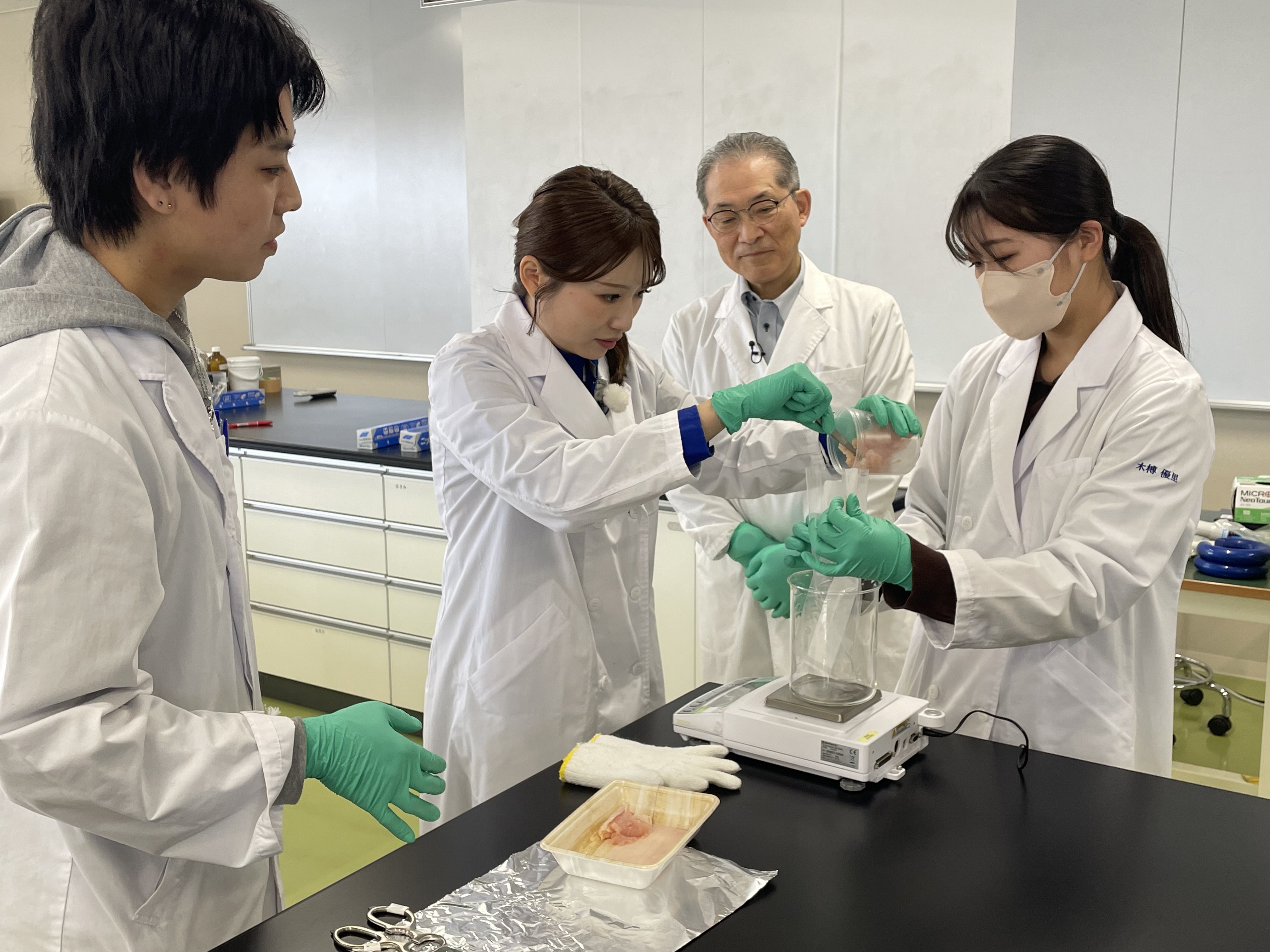 食品安全の調査や、食品の機能性の分析など、フードサイエンスコースで学生が行っている研究の様子を調査します。